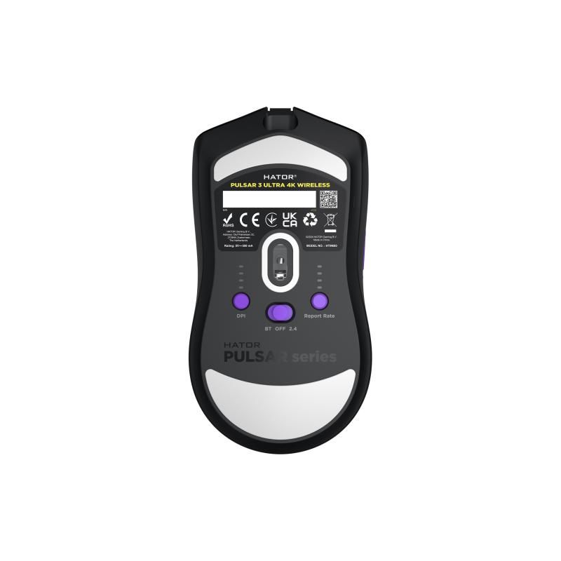 Mouse gaming wireless Hator Pulsar 3 ULTRA 8K+4K, polling rate pana la 8000Hz, senzor Optical PixArt PAW 3950, rezolutie maxima 30000 DPI, switch HATOR® Optical 100M, side switch Kailh 3M, durata de viata baterie in wireless mode pana la 180 de ore, negru