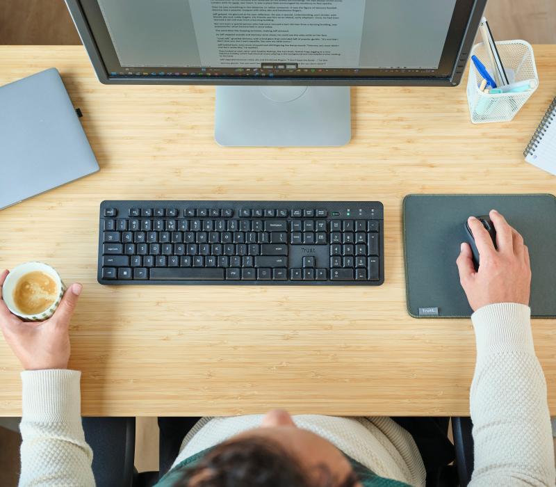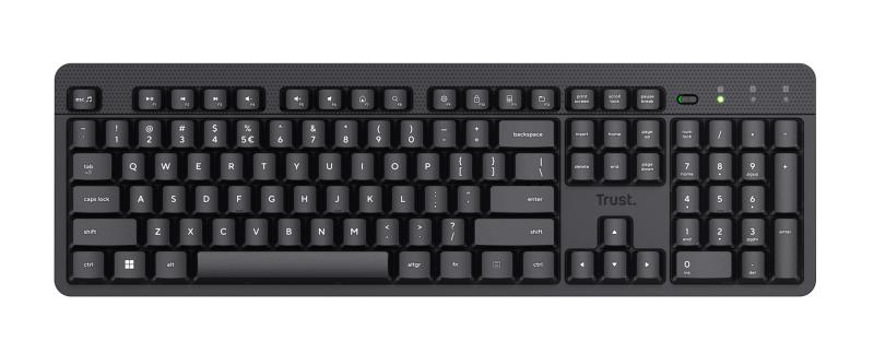 Tastatura wireless Trust Ody II, cu taste silentioase, cu functie de power saving, rezistenta la stropire, conectare tip USB-A 2.0, include 2 baterii, compatibila PC/Laptop (Windows, MacOS, Chrome OS), negru